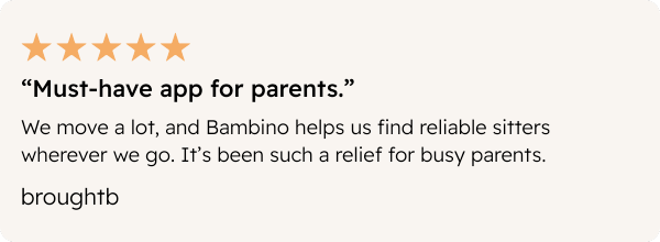 With Bambino, finding a trusted Sitter is safer, simpler, and a lot less stressful — so you can make that meeting, enjoy a night out, or recharge and just breathe.